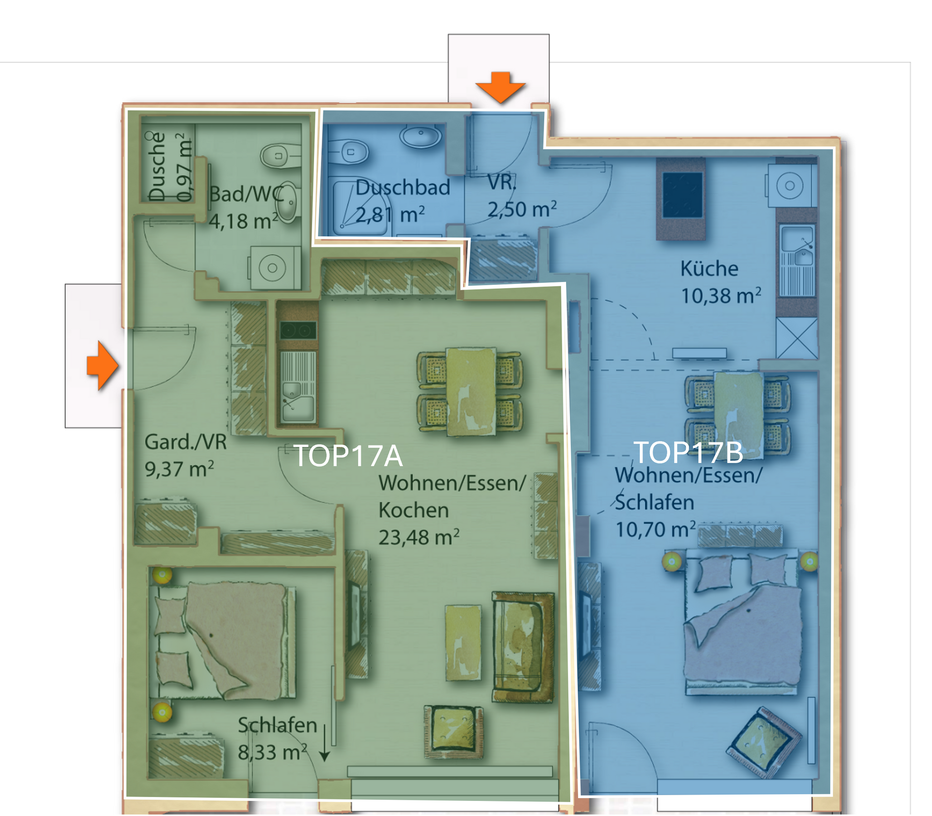 - 1 appartamento con 2 camere da letto e 1 monolocale